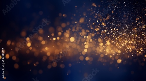 abstract background with Dark blue and gold particle. Christmas Golden light shine particles bokeh on navy blue background. Gold foil texture.