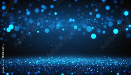 abstract background with Dark blue particles. Christmas Golden light shine particles bokeh on navy blue background. blue foil texture. Holiday concept.