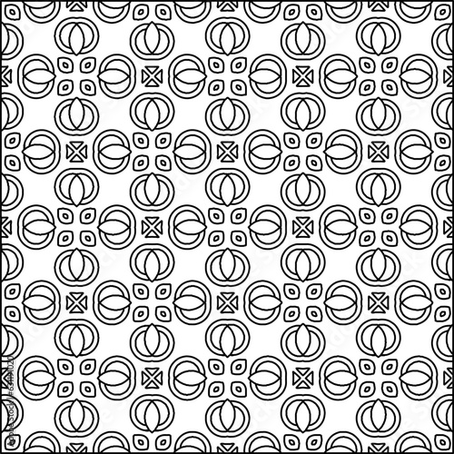 Abstract background with figures from lines. black and white pattern for web page, textures, card, poster, fabric, textile. Monochrome graphic repeating design.