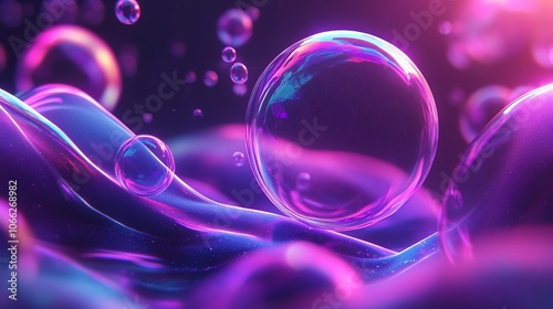 Abstract background with glowing iridescent bubbles and waves.