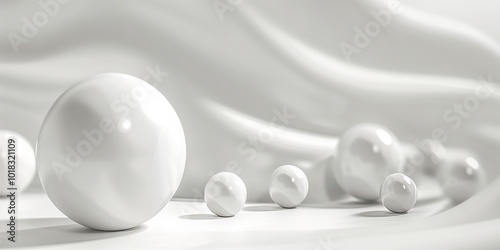 Abstract background with spherical elements and white backdrop with shadows, minimalist design, modern style, calm atmosphere.