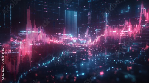 Abstract background with stock market growth and decline, digital financial charts and indicators