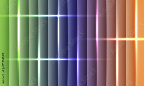 Abstract background with vertical panels displaying a vibrant gradient and glowing neon light grid overlay
