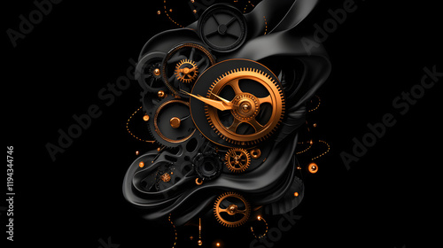 gear, cog, clockwork, mechanism, machinery, black, gold, metallic, luxury, technology, industrial, engineering, intricate, complex, elegant, sophisticated, time, motion, power, energy, innovation