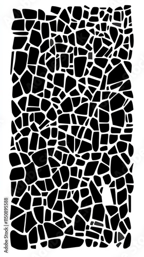 abstract, black, white, pattern, irregular, stone, mosaic, texture, design, shape, geometric, art, background, graphic, illustration, tile, pebble, crack, line, monochrome, style, modern, contemporary, minimalist, simple, elegant, bold, contrast, visual, image, element, surface, decor, wall, floor, digital, print, rocky, cobbled