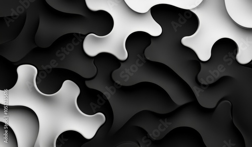 abstract, black, white, puzzle, pattern, modern, layered, illusion, photo, organic, fluid, design, contemporary, background, texture, shape, curve, graphic, monochrome, art, creative, stylish, innovative, trendy, minimalistic, decorative, digital, dynamic, contrast, visual, aesthetic, surreal, elegant, smooth, flow, shadow, depth, perspective, harmony