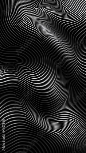 abstract, black-and-white, texture, pattern, monochrome, minimalist, design, modern, digital artwork, optical illusion, futuristic, ripple, line, curve, flow, artistic, geometric, stylish, background, abstract art, dynamic, elegant, wave, symmetry, graphic, motion, depth, contour, creative, sleek, fluid, black background, contrast, line art, undulating