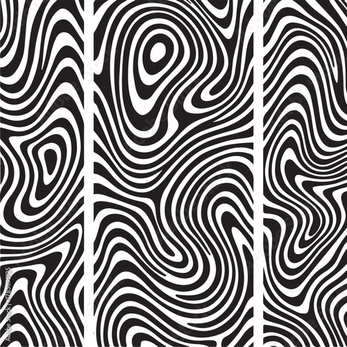 Abstract black and white wavy lines creating a mesmerizing optical illusion pattern, dynamic fluid texture, perfect for modern design, graphic art, and captivating artistic backgrounds.