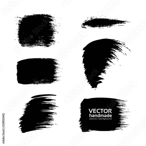 Abstract black textured smears of different forms set isolated on a white background