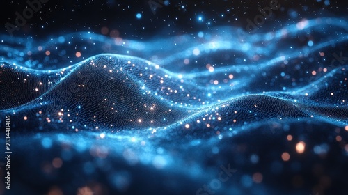 abstract, blue, black, digital, wave, particle, sparkling, art, technology, three-dimensional, texture, light, design, background, pattern, gradient, futuristic, illustration, concept, geometric, science, graphic, effect, motion, glow, dynamic, smooth, fantasy, cosmic, dark, bright, night, glowing, modern, space, universe, style