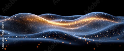 wave, particle, blue, gold, glow, dark, abstract, background, texture, energy, light, sparkle, glistering, motion, flow, digital, design, technology, science, cosmos, space, astronomy, night, pattern, dynamic, seamless, illustration, graphic, three-dimensional, rendering, art, modern