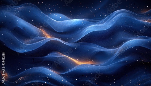 abstract, background, blue, gold, glistering, sparkle, wave, texture, pattern, design, digital, art, graphic, modern, minimalism, dark, light, fluid, motion, dynamic, smooth, curvy, iridescent, shimmering, glowing, soft, dreamy, elegant, luxury, futuristic, cosmic, galaxy, space, astronomy, night, sky, star, universe, fantasy, dream, imagination