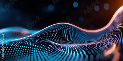 technology, abstract, background, modern, bokeh, orange, pattern, dot, glowing, light, bright, wavy, wave, futuristic, circle, graphic, texture, colours, blue, digital