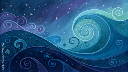 pattern, vector, design, winter, illustration, blue, christmas, floral, water, decoration, art, wave, flower, snow, swirl, ocean, card, sea, snowflake, wallpaper, curve, background, light, star, curl
