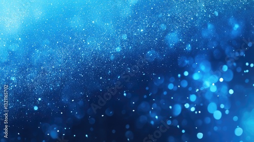 Abstract blue bokeh background with shimmering lights creating a dreamy atmosphere, suitable for various design projects