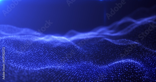 Abstract blue energy waves from particles of futuristic hi-tech glowing background