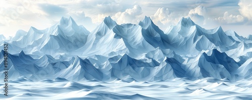 mountain, blue, abstract, sky, cloud, digital, art, landscape, nature, geometric, pattern, texture, design, graphic, illustration, fantasy, modern, minimal, style, background, wallpaper, artwork, three-dimensional, rendering, creativity, inspiration, concept, aesthetic, futuristic, icy, glacé, cold, peak, range, vista