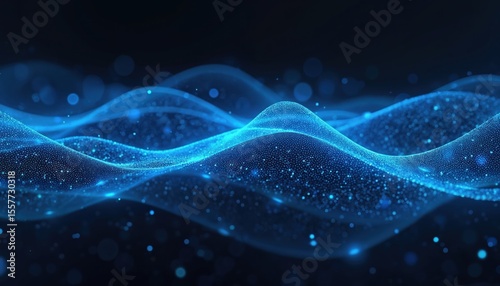 Abstract blue technology background wave made of lines dots particles. Tech, digital, network, business, web concept illustration. Modern futuristic design. Beautiful wallpaper for presentation.