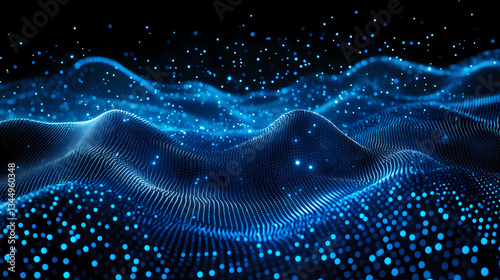 deep blue, abstract, wavy, dotted, structure, particle, effect, flow, light, shadow, black, background, future, technology, digital, tech, dynamic, energy, modern, design, movement, artistic, electronic, high technology