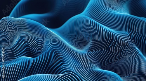 abstract, blue, wave, pattern, line, curve, digital, design, art, three-dimensional, graphic, texture, background, modern, style, geometry, dynamic, shape, visual, illustration, artistic, concept, tech, futuristic, technology, fluid, movement, smooth, render, rendering, flow, datum, structure, surface