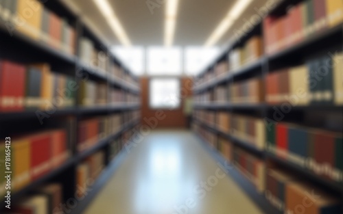 Abstract blurred public library interior space. Blurry room with bookshelves. High quality
