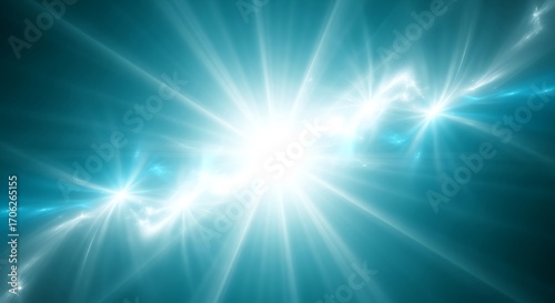 Abstract bright cyan light explosion with glowing energy streaks and flares
