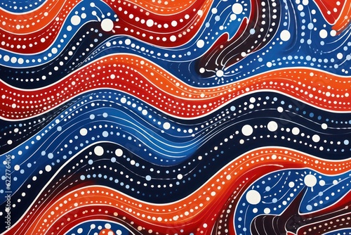 aboriginal, painting, dotted, pattern, abstract, playfully, red, blue, line, wavy, hallucinogen, design, texture, wallpaper, art, vintage, ornament, decoration, illustration, decor, textile, element, style, retro