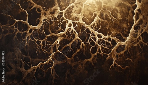Abstract Brown and Gold Veins Artistic Render, Intricate Network, Branching Patterns, Deep Texture, Dark Background, Mysterious Design