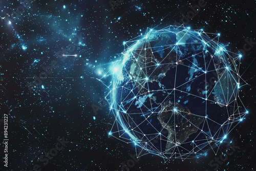 abstract business connection of line from nail node to node on world map background network points Earth's surface