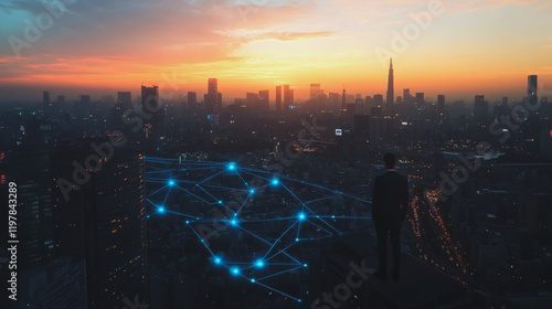 abstract, business, team, stand, peak, success, businessman, tall, innovative, modern, building, canvasses, potential, predict, future, company, growth, smart, digital, city, connection, network, reciprocity, city landscape, concept, wireless, social, media, connect, people, double, exposure, wave, background, artificial intelligence, thing, networking
