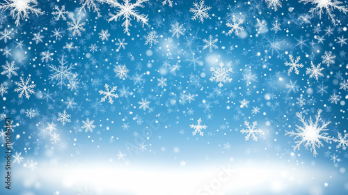 Abstract christmas blue and white background winter wonderland background with snowfall and snowflakes falling from the sky