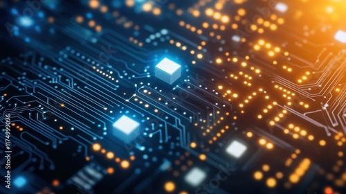 circuit board, technology, digital, electronic, electric, glowing, illuminated, network, connection, datum, information, innovation, future, modern, science, computer, hardware, chips, microchip, motherboard, pcb, engineering, futuristic, light, blue, orange, dark, closeup
