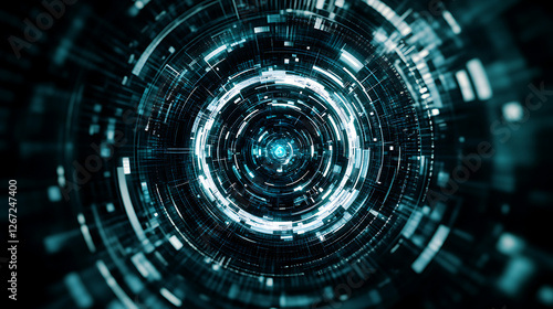 Abstract Circular Cybernetic Data Stream with Light Emanating from the Central Point Source