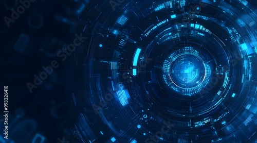 Abstract Circular Digital Technology Background with Glowing Blue Elements