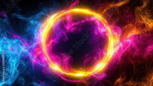 abstract, circle, energy, glow, light, line, blue, orange, yellow, pink, purple, vibrant, bright, dark, background, design, futuristic, neon, cosmic, aethereal, mystical, magical, surreal, dynamic, motion, swirl, pattern, texture, graphic, digital, art, illustration, concept, creative, wallpaper