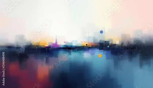 abstract, city landscape, painting, digital, art, dawn, sunrise, landscape, water, horizon, building, modern, contemporary, colours, blue, orange, purple, pink, grey, light, shadow, texture, style, design, image, artistic, creative, visual, aesthetic, graphic, illustration, artwork, masterpiece, canvas, vibrant, serene, dreamlike, evocative, atmospheric