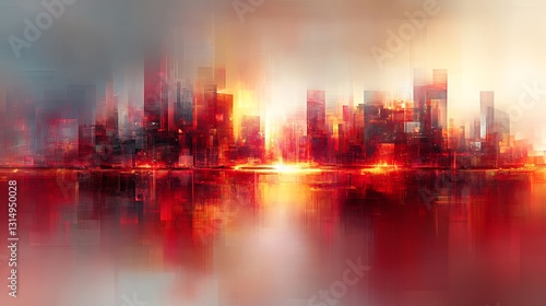 Abstract cityscape sunrise reflection