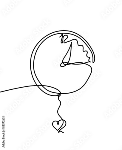 Abstract clock with heart as line drawing on white background. Vector