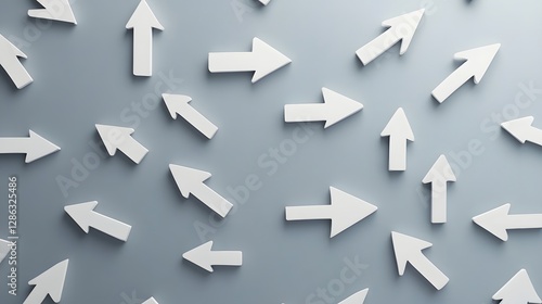Abstract Cluster of Arrows on Gray Background Symbolizing Business Strategy and Concepts