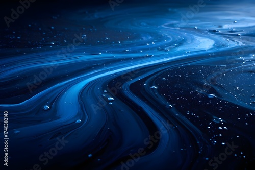 Abstract cobalt paint swirls and pools in deep artistic blue hues embody creativity and visual depth