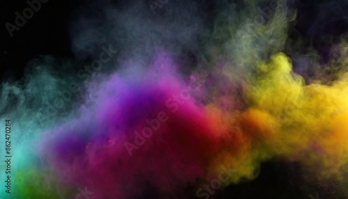 Abstract Coloful Smoke Dust Particles Night haze Mist Floating on Rainbow Coloured Smoke on Dark Black