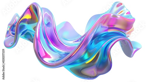 Abstract colorful fluid shape on white background with iridescent hues, representing digital art and modern design concepts.