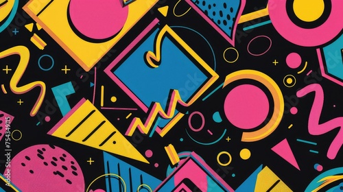 Abstract colorful geometric,cyberspace art and futuristic 80s memphis poster.
