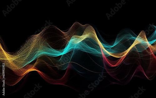Abstract colorful glowing lines on black background. Generative AI technology.