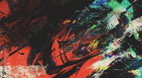 Abstract colorful grunge style digital art with bold textures and dynamic movement