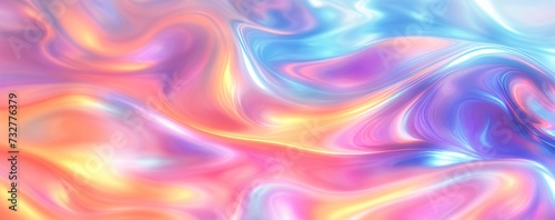 Abstract colorful holographic foil background with fluid shapes and smooth waves. Сoncept for design and print for wallpaper, banner, or poster