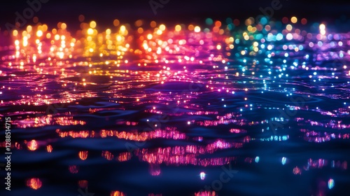 Abstract Colorful Lights Reflecting on Water Surface with Dreamy Effect