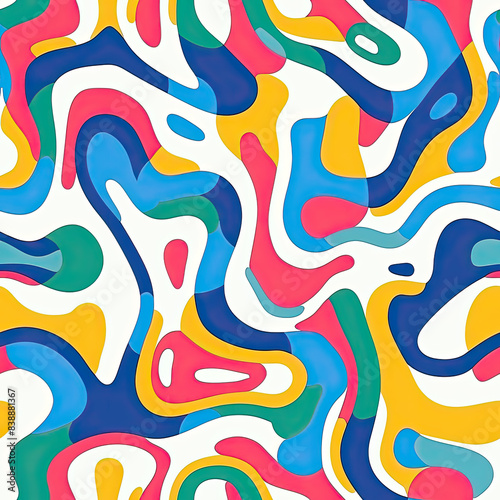 Abstract colorful seamless pattern with flowing curve twirl shapes colorful fluid vivid vibrant.