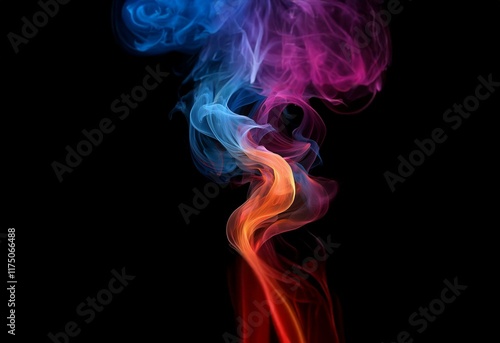 Abstract colorful smoke swirling on a black background.