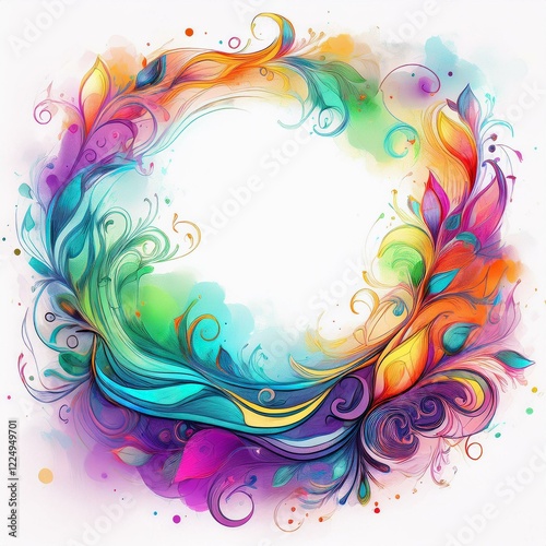 Abstract colorful swirling grunge illustration border frame with copy-space on white background